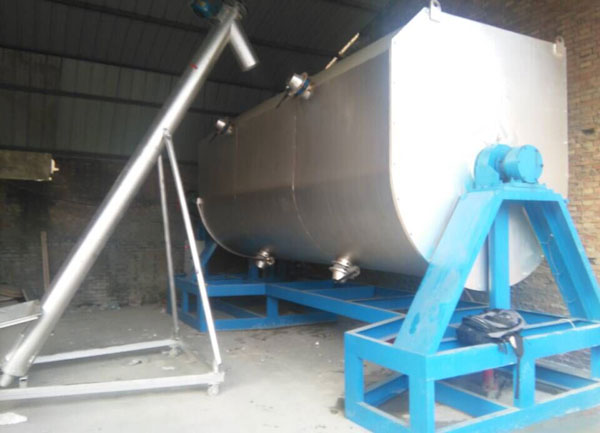 工艺流程:通过水管在搅拌机内加入水后,在把分散机搅拌过的乳液,倒入搅拌机内,再通过螺旋提升机把沙子提升至搅拌机内,进行搅拌。
